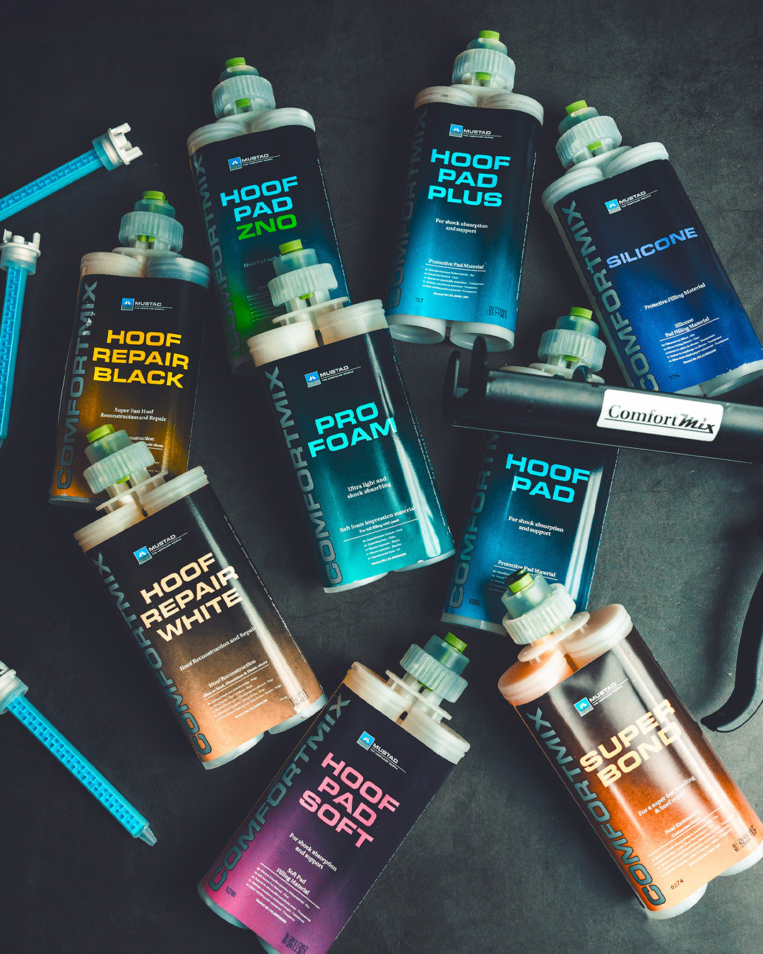 Comfortmix: Lepidla na kopytní stěnu a polstry na vyplnění chodidla.